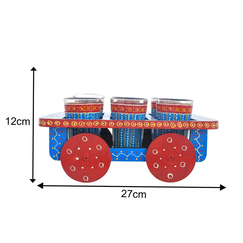 HandPainted Alluminium Tea Kettle with 6 Glasses and Wooden Tray For Home Decor , Tea Party , Serving