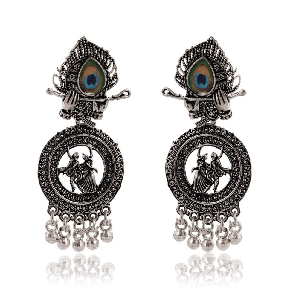Earrings For Women AZ838-OXidised Traditional Radha Krishna | Silver Beads Ethnic Jhumka/Jhumki