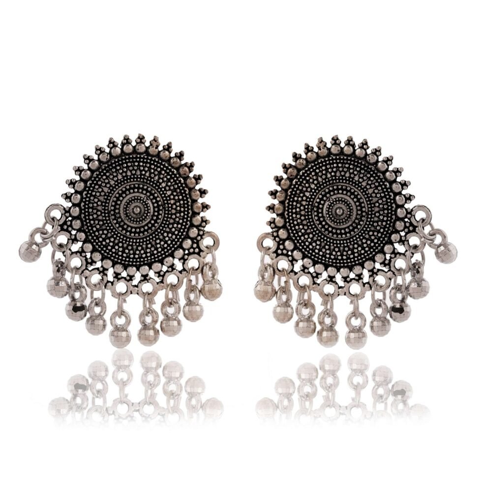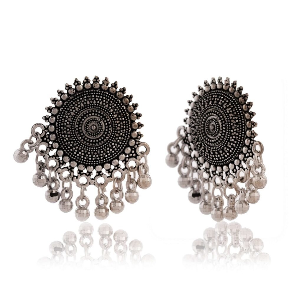 Earrings for Women Traditional Silver AZ838-OXidised Jhumka Set | German Silver Chand Baliyan & Jhumkas Earrings | Birthday & Anniversary Gift -AZ838-OX-ER32