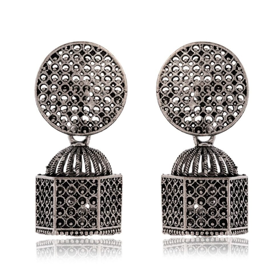 Earrings for Women Traditional Silver AZ838-OXidised Jhumka Set | German Silver Chand Baliyan & Jhumkas Earrings | Birthday & Anniversary Gift -AZ838-OX-ER33